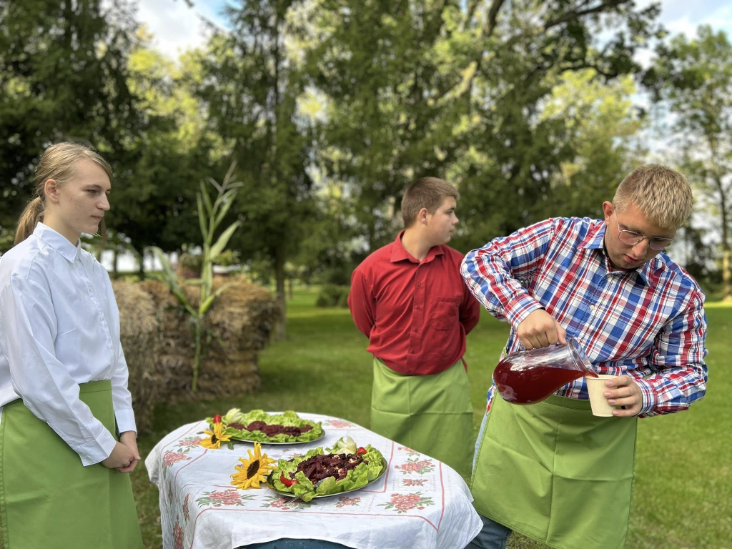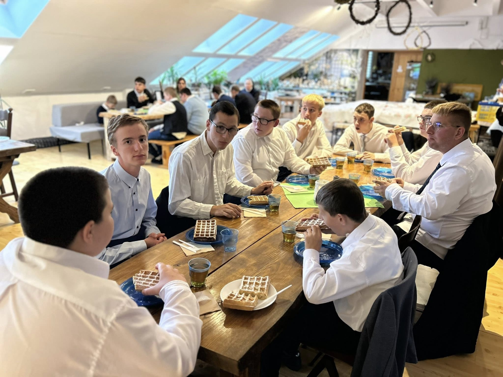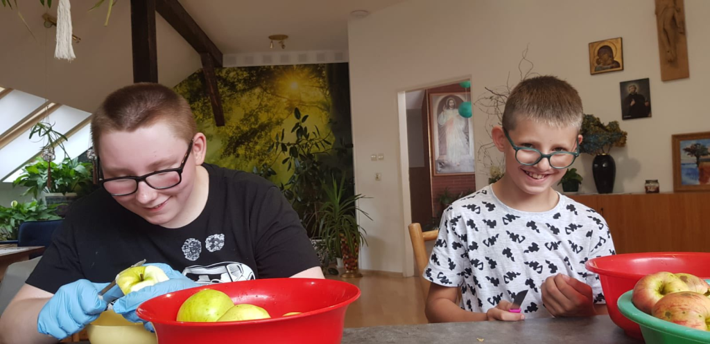 W atmosferze domu rodzinnego poznawaliśmy tradycje związane z dziękczynieniem za chleb powszedni. Uroczyste Dziękczynienie rozpoczęło się od spotkania modlitewnego, co miał duży wpływ na rozwój duchowy, bo przede wszystkim dziękowaliśmy Panu Bogu za wszystkie dary które otrzymujemy w postaci owoców i warzyw z naszego pola i sadu. Pani Przemysława, wyśmienity cukiernik i piekarz naszej kuchni ośrodkowej, zrobiła krótki pokaz powstawania prawdziwego, domowego chleba, za co byliśmy jej bardzo wdzięczni.