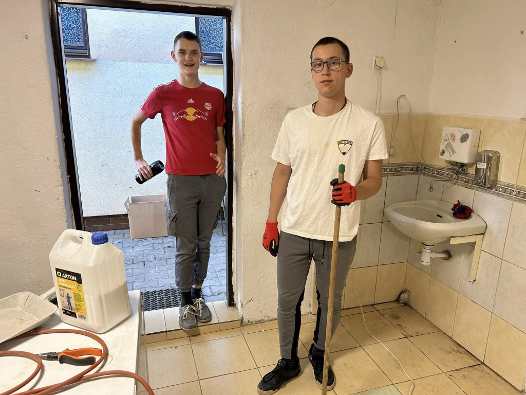 Grupa starszych chłopaków od samego początku wzięła się do działania na różnych odcinkach prac remontowych i montażowych. Chłopacy sprawnie pomagali w zagospodarowaniu i uporządkowaniu pomieszczeń przeznaczonych na warsztaty do majsterkowania.