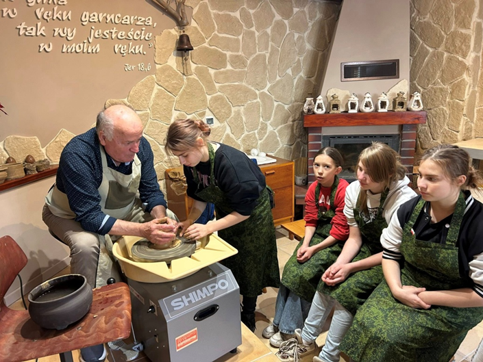 W ośrodku mieliśmy okazje gościć garncarza – Pana Ryszarda, dzięki któremu wychowankowie mogli uczestniczyć w warsztatach garncarstwa. Podczas warsztatów wychowankowie mogli tworzyć na kole garncarskim niepowtarzalne naczynia z gliny własnymi dłońmi. Była to nowa umiejętność, którą młodzież nabyła. Pan Ryszard pokazał nam swoją pasję, precyzję w pracy, dokładność, a przede wszystkim cierpliwość i ogromne serce w pracy z wychowankami.