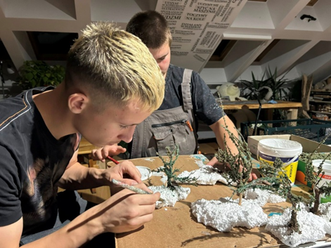Młodzież ośrodka poprzez współpracę i wspólne zadanie tworzyła makietę o tematyce II wojenny światowej. Praca plastyczna o tematyce wojennej to prawdziwa lekcja historii.