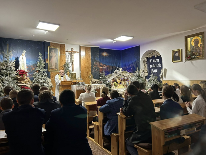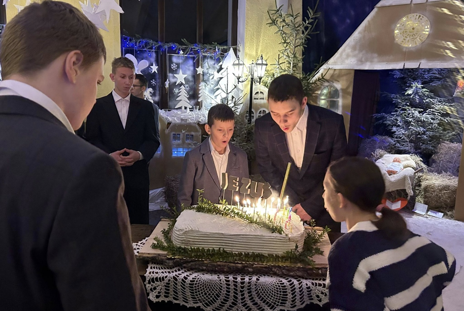 Każda z grup złożyła swoje życzenia i wyraziła wdzięczność Dzieciątku Jezus. Nie zabrakło wspólnego śpiewu kolędy „Jezusa narodzonego wszyscy witajmy”, tortu, radosnej zabawy tanecznej oraz kolacji przy wspólnym stole – z pizzą i serdeczną atmosferą. To był piękny czas bliskości, radości i wspólnego bycia razem.