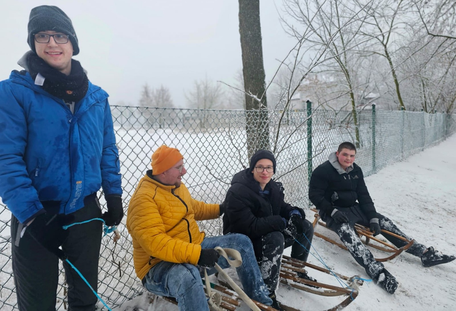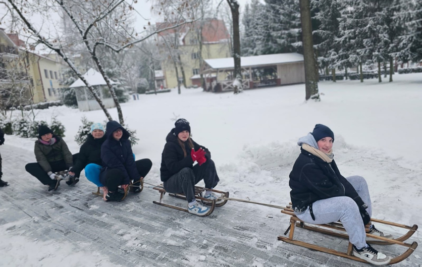 Każda pora roku ma swoje piękne strony. Tegoroczna zima jest dla nas szczególnie hojna. Mróz i opady śniegu sprawiły, że możemy cieszyć się białym puchem, który w naszych dłoniach stał się materiałem rzeźbiarskim. Przejazd sankami po malowniczym terenie naszego parku dostarczył nam  wielu radości. To był świetny czas bycia razem i wspólnej zabawy.